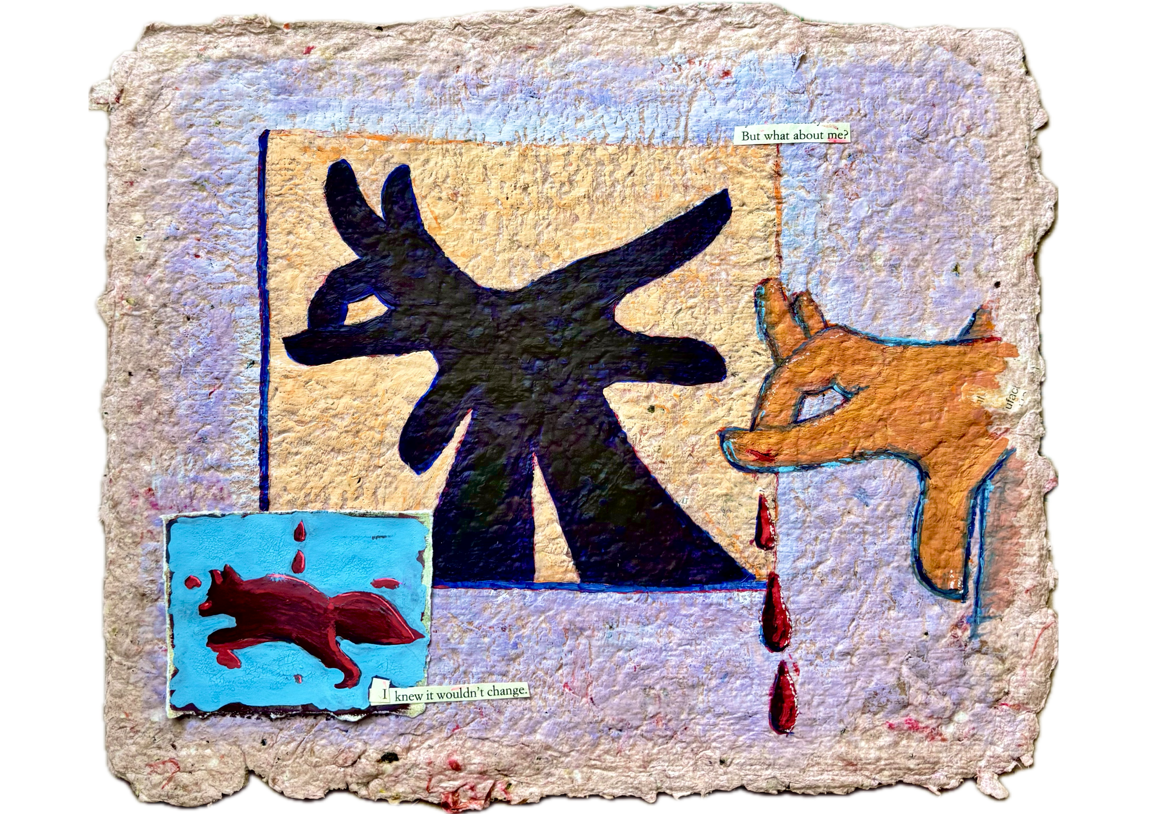 2025. 9 x 11 in. egg tempera, acrylic and collage on homemade paper.